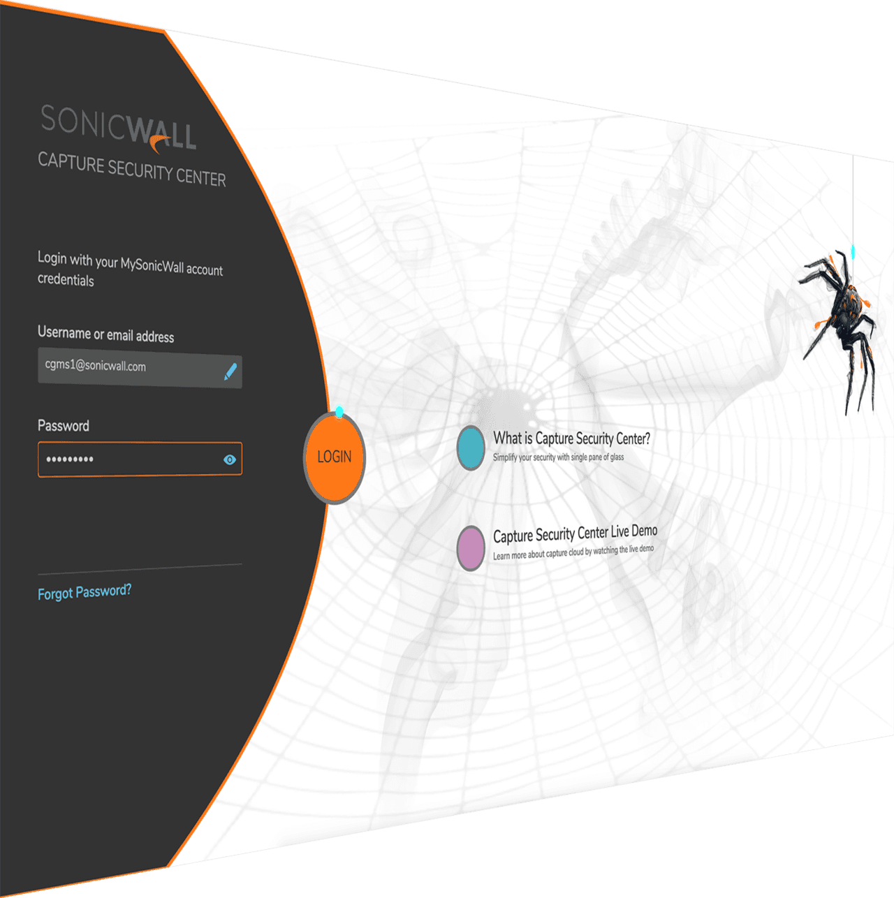 SonicWall Capture Security Center is built-in and ready to use. It’s included as part of your SonicWall product or service. Your single-sign-on is www.mysonicwall.com. Just enter your username and password! And you’re set. Welcome to Capture Security Center, your SPOG